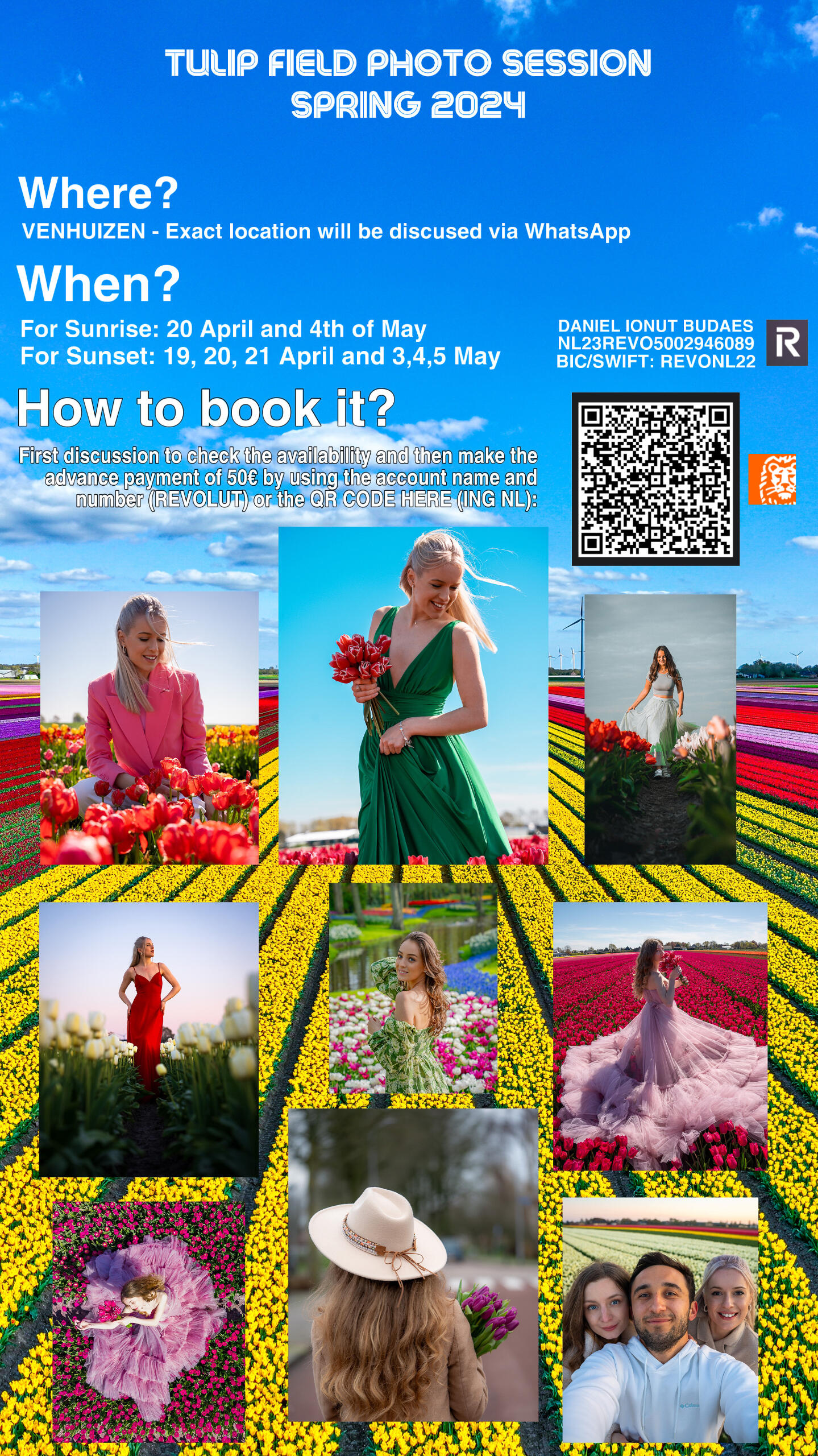 I am organizing Photo Shoots in the tulip fields at sunset and sunrise.